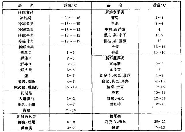 表2-2主要是腐食品的運(yùn)輸適溫