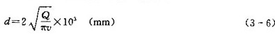 (4)管道內徑計算,當管道流量Q確定后,其內徑d由下式表式: