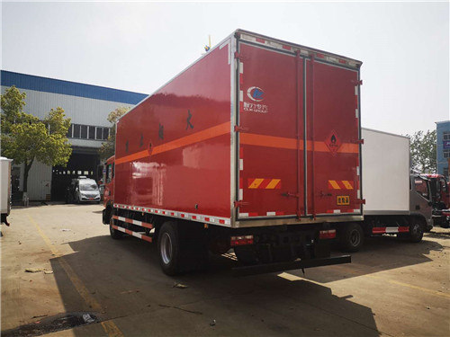 東風D9廂體6.8米易燃氣體廂式運輸車廂體尺寸:6800*2420*2500mm,整車尺寸:9105*2550*3850mm,廂體外采用平面彩鋼板廂體,內部鋁板,底板平面碳鋼板;鋪裝防靜電膠皮及車載專用煙霧報警器和后門防盜器.有靜電帶,滅火器,防火罩。整車國標反光標示及警告標志。廂體紅色。