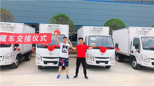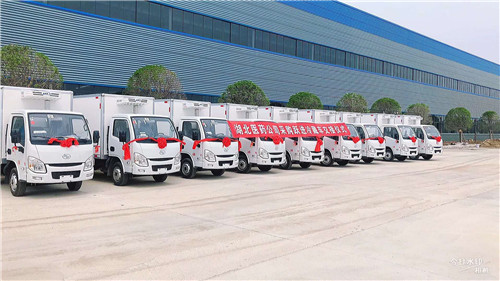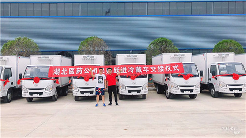 上汽躍進(jìn)小福星冷藏車整車型號:NJ5032XLCPBBNZ1,整車尺寸:5155×1705×2560(mm),廂體尺寸:3260×1550×1650(mm),廂體容積8.3方,總質(zhì)量3495kg,整備質(zhì)量3120kg,額定質(zhì)量1245kg。 底盤配置:NJ1032PBBNZ1,2650mm軸距,昆明云內(nèi)D19TCIE10國五95馬力發(fā)動(dòng)機(jī),1.9排量,185R14真空胎,后雙輪。 熱烈祝賀湖北醫(yī)藥公司批量采購上汽躍進(jìn)小福星冷藏車首批十臺順利交接(如下圖):