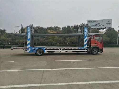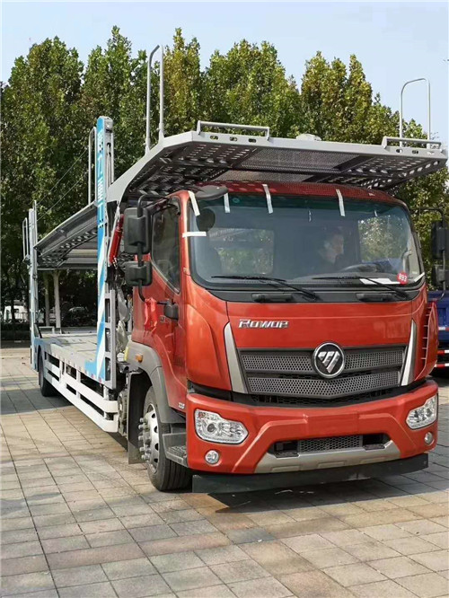 福田瑞沃M4五位轎運車整車型號:BJ5185TCL-FA型車輛運輸車 ,底盤型號:BJ5185XXY-FD ,總質量:18000 kg,額定載質量:8890,8825 kg,整備質量:8980 kg,外形尺寸(mm):12000×2550×3670,駕駛室準乘人數(人): 2,3,僅選用底盤軸距為7250mm.僅選用底盤發動機YC6J220-52,WP4.6NQ220E50.所對應的油耗值分別為29.0,29.0L/100km,側防護材料為Q235B碳鋼,連接方式為螺栓連接,后下部防護由專用裝置替代,離地高度為500mm.安裝帶有衛星定位功能的行駛記錄儀,ABS。福田瑞沃M4五位轎運車圖片展示:
