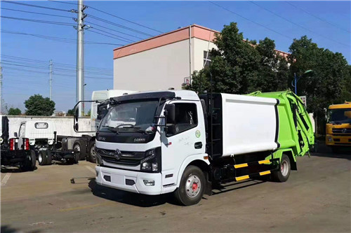 東風日產凱普特8方壓縮垃圾車全落地垃圾斗裝置適用于客戶當地人工裝填垃圾或直接清掃垃圾或斗車裝填。