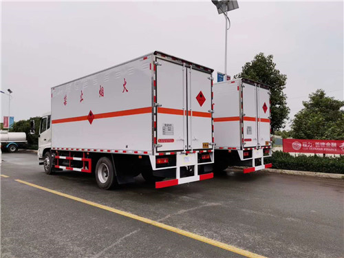 國六東風天錦易燃氣體廂式運輸車廂體選擇頂部封閉,不可開啟,右側雙開門。采用國內先進技術雙層金屬骨架結構,外冷軋鋼板內飾鋁板,夾層為隔熱阻燃材料填充,廂體側壁設有防雨功能自然通風窗口,尾部設置對開門,廂體內部做防靜電處理,廂體底部鋪導靜電膠板,車輛副梁配導靜電帶,箱體內側壁裝有固定運載特的拉環,廂體內頂部安裝感煙報警器,側、后門處安裝防盜裝置。