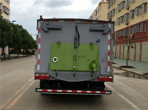 6)具備倒車保護裝置,在作業過程中如遇緊急倒車,智能化的控制系統會自動停止作業并收回掃盤、吸盤和側噴桿;具有防止舉升垃圾箱翻車保護;具有檢修安全保護。