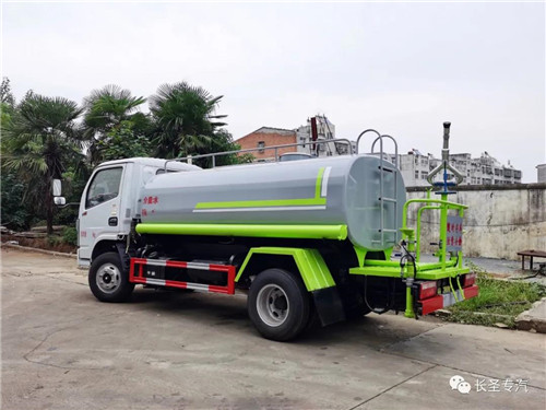 我公司生產灑水車,標配前沖、后灑、側噴、后置式工作平臺、平臺上有高壓水炮(可360°旋轉,可調成柱狀最大射程35米,也可調成霧狀最大射程15米,可調成:直沖狀、大雨、中雨、小雨、毛毛雨),配備優質大功率專用灑水泵,取力器,雜物過濾網,國標通用65型消防接口、1套自流球閥系統,2根引水鋼絲膠管。水泵、取力器、球閥、濾網均為國家標準產品,主管道加粗,法蘭墊、法蘭盤加厚,萬向前沖,大通徑球閥,具有性能優良,工作可靠、效率高、流量大、維修方便等特點。