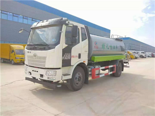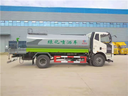 國六解放15方灑水車整車型號:CLW5182GPSC6型綠化噴灑車,底盤型號CA1180P62K1L2A1E6Z,總質量:18000kg,額定載質量(Kg):10505,10570kg,整備質量(Kg):7300kg,駕駛室準乘人數(人):3,2,外形尺寸(mm):8500×2520×3200mm,