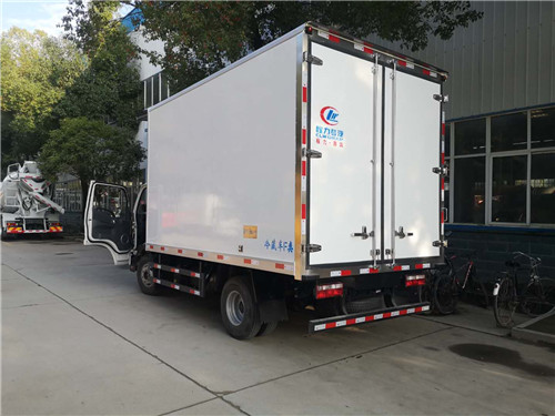 JAC駿鈴V6國六云內150馬力冷藏車圖片參數廂體工藝: 廂體材質采用內外玻璃鋼,中間8CM聚氨酯保溫板,后雙開門,廂體右側靠前選裝開側門,底部采用花紋防滑鋁板,前部排水孔,門邊條采用迷宮式橡膠密封條,鋁合金型材包邊,不銹鋼包角,不銹鋼門鎖,不銹鋼門框及合頁,廂體內節能LED照明燈。