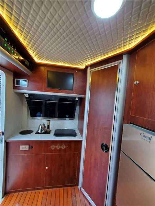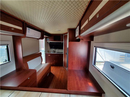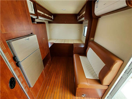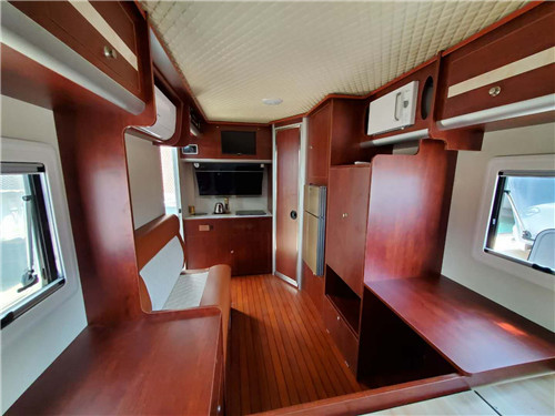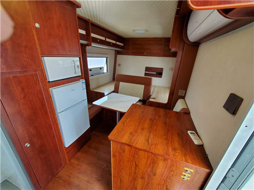 背駝式拖掛房車,整車尺寸:5995*2250*2600,它具有跟隨性好,前車能去的地方后車也能去,轉彎半徑小,6米左右的公路在沒有護欄的情況下,就可以原地掉頭,車身框架以及車身采用全鋁結構,重量輕,小剮蹭可以不必理會,車內電器全部選用220V,水電按照家裝方案,維護簡單方便,停車方便,一字型、七字型停車都可以,廚房內置,前額頭床長2000mm、寬1500mm,后床長2000mm、寬1450mm,冰箱、洗衣機、家用空調一應俱全,最最主要一點就是,C1藍牌就可以駕駛啦。背駝式拖掛房車內飾圖片展示: