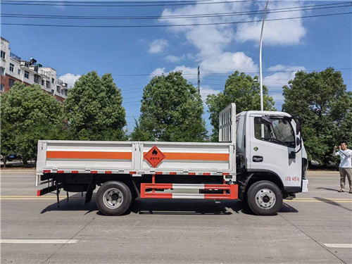 國六東風4.2米藍牌氣瓶運輸車額載1.1噸圖片參數介紹? 底盤配置:東風福瑞卡駕駛室,云內125馬力發動機,萬里揚5檔箱,7.00R16輪胎,1.8噸前橋,3.5噸后橋,空調,方向助力,電動門窗,中控鎖,多功能方向盤,定速巡航,ABS,斷氣剎,雙預警。 整車尺寸:5995×2150×2450 廂體尺寸:4120×2000×600 倉欄配置:嚴格按照公告尺寸制作,邊2底3材質,帶可卸式高欄,底板上鋪靜電膠皮,配備滅火器,三角頂燈,靜電拖帶等,嚴格按照國家危險品法規進行“易燃氣體”標識粘貼等