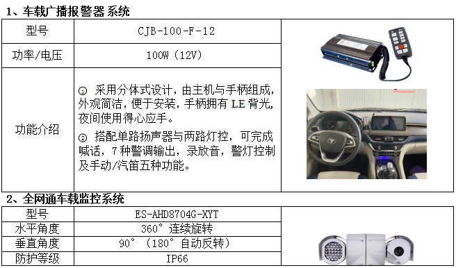 電器系統(tǒng)裝備有寶雞市凌云機電設(shè)備制造有限公司生產(chǎn)的CJB-100-F-12型車用電子報警器和深圳市英尚科技有限公司生產(chǎn)的ES-AHD8704G-XYT全網(wǎng)通車載監(jiān)控系統(tǒng)。