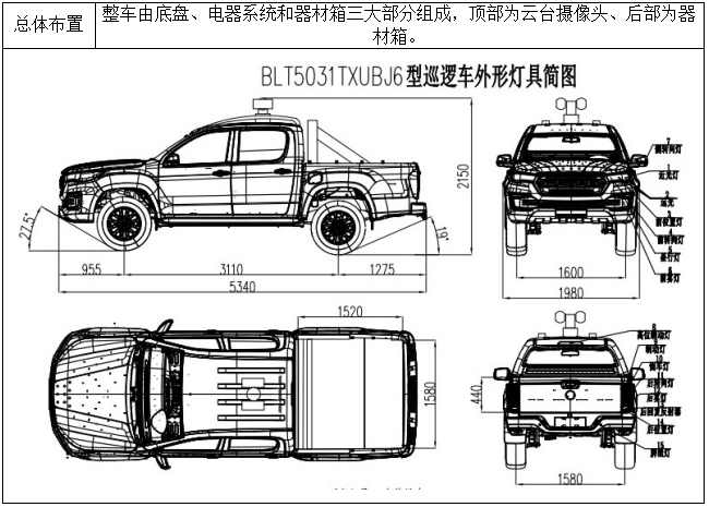 四、博利BLT5031TXUBJ6型巡邏車總體布置圖及性能參數(shù)