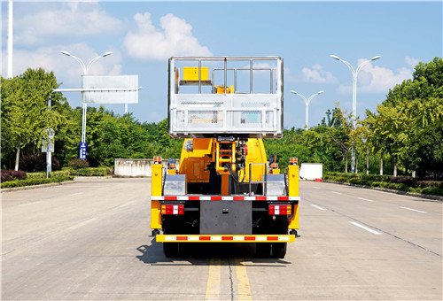 最大作業高度23米,鏈條伸縮機構,四節工作臂同步伸縮,前V后H型方形支腿,穩定性更高,可聯動也可單獨調節,支腿帶爆閃燈,鋁合金工具箱,不銹鋼圍欄,鋁合金花紋防滑走臺板,工作平臺和地面遙控電氣操作,工作臂可360 度連續回轉,不銹鋼工作斗可360度旋轉帶電機調平,工作斗最大承重200公斤,電腦控制,自動限幅,安全性能卓越。主要配套液壓件、電器件、平衡閥、控制器均為品牌件。帶應急泵,當發動機及主泵發生故障時,可將工作人員送回到地面。