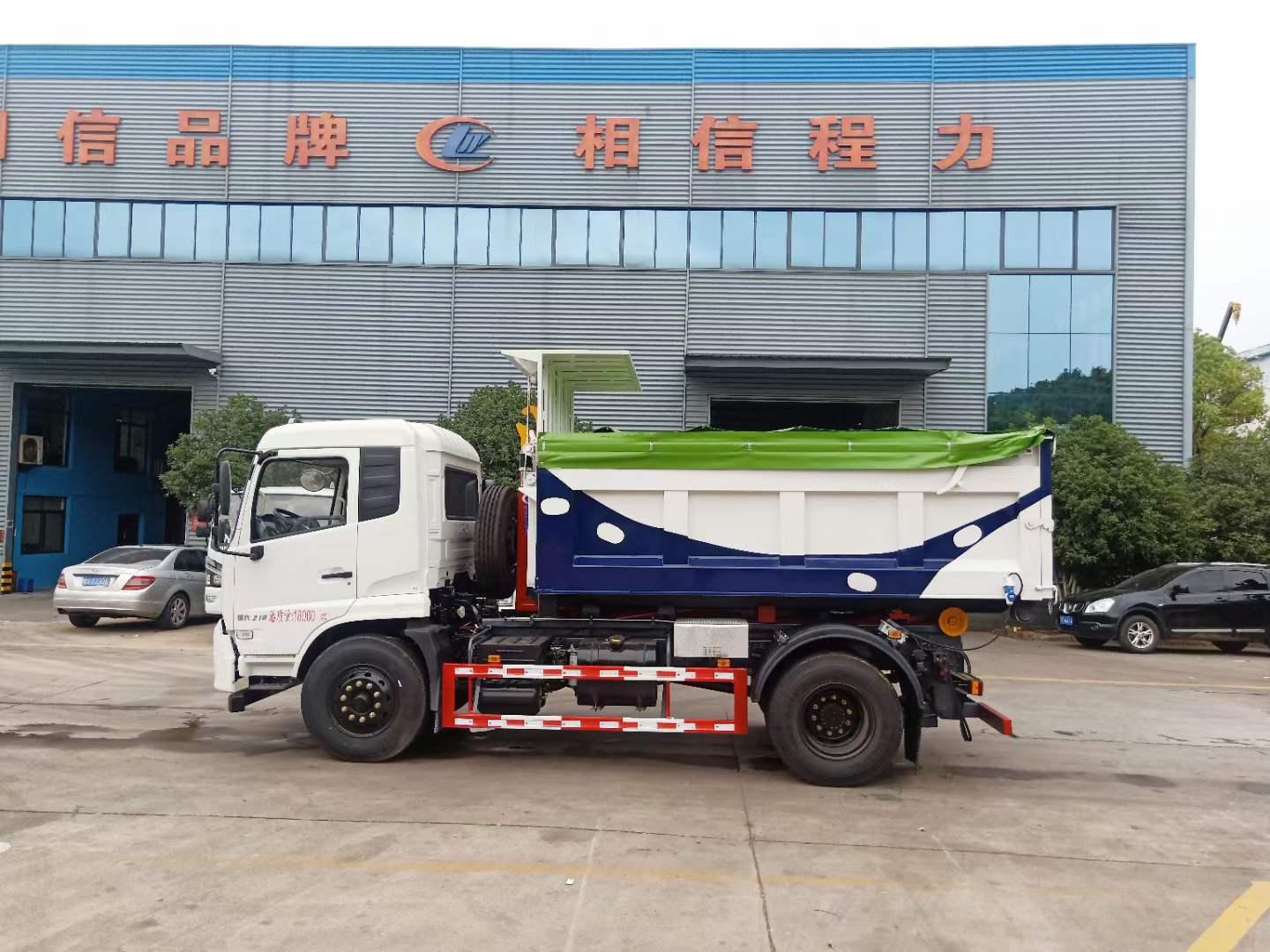 東風天錦勾臂垃圾車配套12方篷布垃圾箱圖片展示: