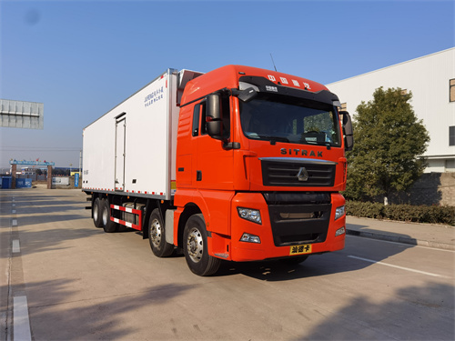 【國六重汽汕德卡G7前四后八9.6米冷藏車底盤配置】:汕德卡G7-G駕駛室 經典版,多功能方向盤,氣囊主座椅,電動電加熱后視鏡,前后四點氣囊減震懸浮,自動空調,定速巡航,LED大燈,1000W逆變器;MC13.48-61發動機/ 德國曼13升480馬力;HW25716XAL變速箱/重汽16檔手自一體;VGD71S自調臂前軸 (鼓)/7.1T; MCY12BGS自調臂雙后橋(鼓)/12T;速比2.85;12R22.5;1000L油箱;四方位攝像頭;