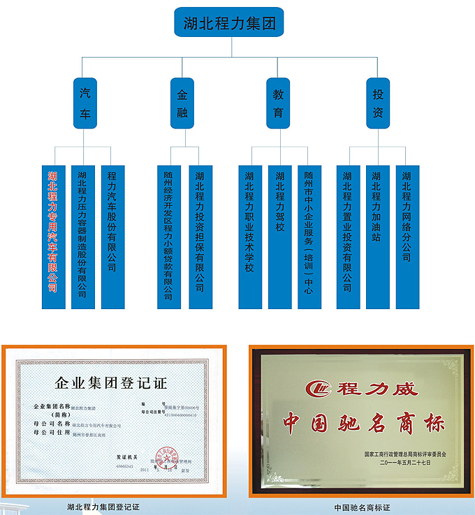 湖北程力集團 總部位于炎帝神農(nóng)故里,編鐘古樂之鄉(xiāng),中國專用汽車之都——湖北省隨州市,集團由母公司湖北程力專用汽車有限公司和3個控股子公司湖北程力壓力容器制造股份有限公司、湖北程力置業(yè)投資有限公司、隨州市經(jīng)濟開發(fā)區(qū)程力小額貸款有限公司和 2 個產(chǎn)權關聯(lián)公司湖北程力投資擔保有限公司、湖北程力職業(yè)技術學校組成,是集汽車技術研發(fā)、汽車制造、汽車改裝、汽車零部件、金融、教育、置業(yè)投資為一體的多元化集團。